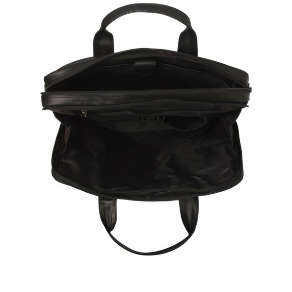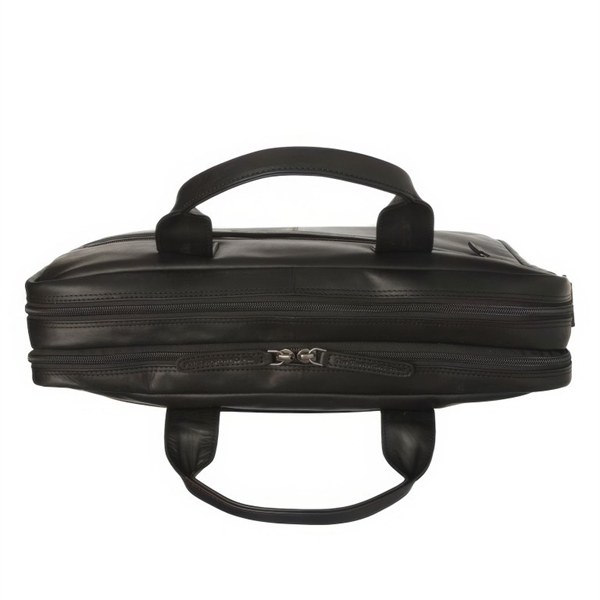 C40.101031 Chesterfield Mappe i læder der er superflot forarbejdet. Mappen har to rum, det bagerste er foret til en 15" bærbar. Mappen har regulerbar skulderrem og to hanke.